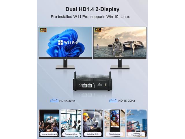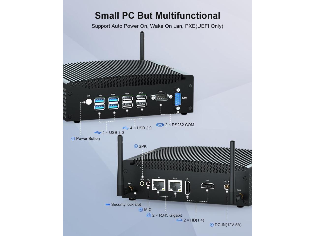Rich Interface & 4K Dual Display:The home office pc is designed with 2* HD (4K 30HZ), 4* USB 3.0 , 4* USB 2.0, 2* RJ45 LAN, 2* DB 9Pin RS232 COM, 1*12V DC IN port, 1* security Lock. RS232 COM allows convenient connectivity with printers, scanners, logic analyzers, and other industrial devices. Mini Tower PC is widely used in Vending machines, kiosks, digital signage, billboards, medical equipment, IOT, CCTV, multimedia teaching etc.