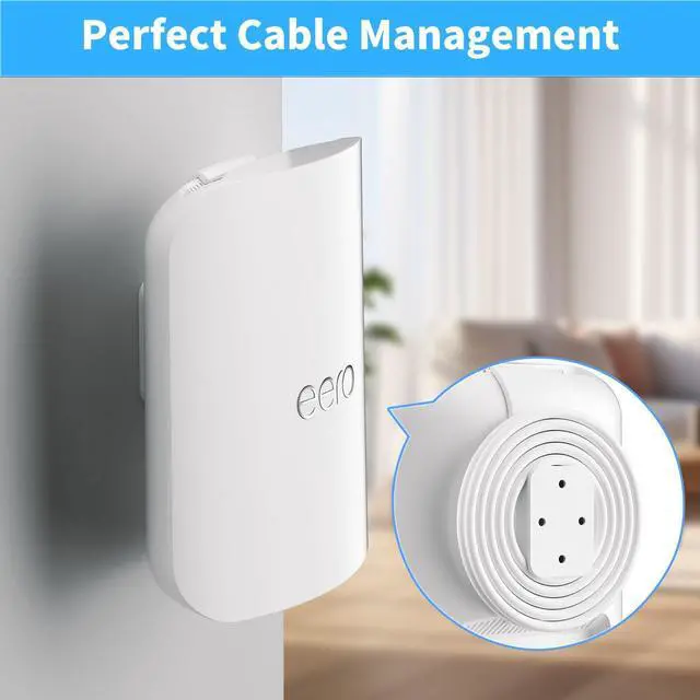 SPACE-SAVING: Free up desktop space by mounting eero vertically on the wall using the eero Max 7 wall mount. Cables can be completely hidden by wrapping them around the back of the mount for a clean, clutter-free layout.