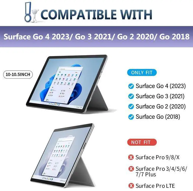 Compatible with Surface Go 4/3/2/1Exclusively designed for Microsoft Surface Go 4 (2023 Release) / Surface Go 3 (2021 Release) / Surface Go 2 (2020 Release) / Surface Go (2018 Release) 10" windows tablet. Please kindly check the model number before purchase