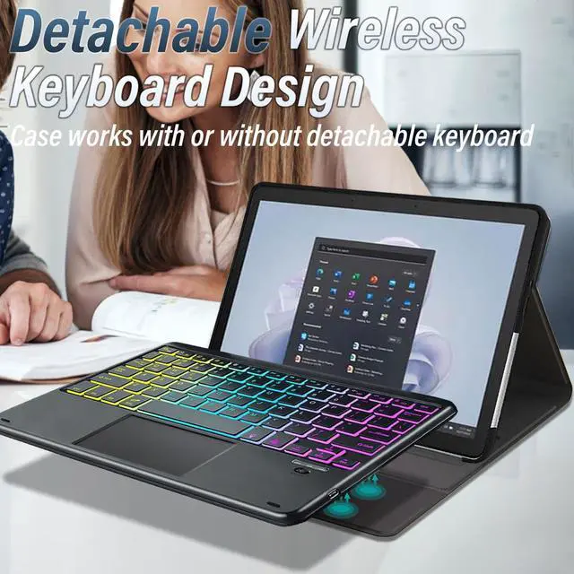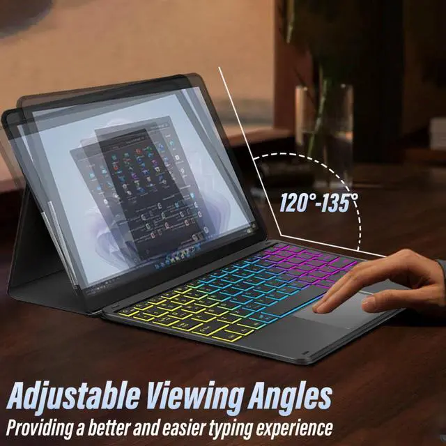 Multiple Angles& RemovableInnovative magnetically detachable wireless keyboard design allows you take it off from your tablet case, to