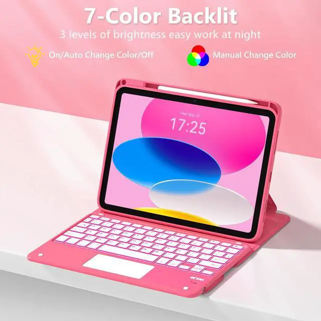 Touchpad for iPad A16 11th/10th Generation Case with Keyboard, 7 Color Backlit 360 Rotation Cover with Pencil Holder,Detachable Keyboard for iPad 11 inch 2025/10th Gen 10.9'' 2022 (Watermelon Red)