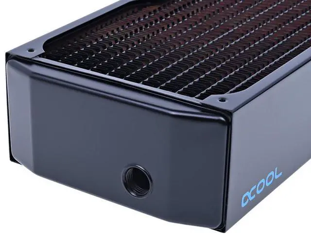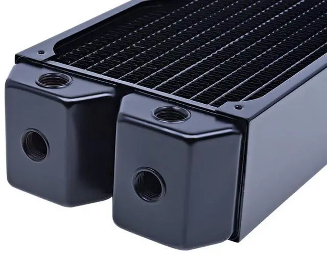 Fin spacing is always an important factor in radiator design. The new series from Alphacool has a fin design which allows it to perform extremely well even with slow-spinning and medium-speed fans. This is not only pleasant thanks to the fact that it avoids unnecessary noise; it also means that the choice of fans that can be used with these radiators is not restricted. Even mounting and installation of fans and radiator grills is easy and versatile with these radiators. Even the dreaded insertion of a screw too far into the radiator does not result in expensive damage.
