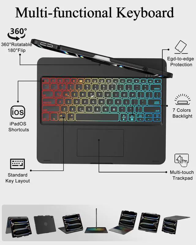 CompatibilityThis keyboard case compatible with iPad Air 13 inch (M3) 2025 (Model: A3268, A3269, A3271), iPad Air 13 inch (M2) 2024 (Model: A2898, A2899, A2900), iPad Pro 13 inch (M4) 2024 (Model: A2925/A2926/A3007). Also compatible with iPad Pro 12.9 inch 6th Generation 2022 (Model: A2436, A2437, A2764, A2766), iPad Pro 12.9 inch 5th Generation 2021 (Model: A2378, A2379, A2461, A2462), iPad Pro 12.9 inch 4th Generation 2020 (Model: A2229, A2069, A2232, A2233) and iPad Pro 12.9 inch 3rd Generation 2018 (Model: A1876, A1895, A2014, A1983). Please check the model number starting with "A" on the back of your tablet before purchasing.