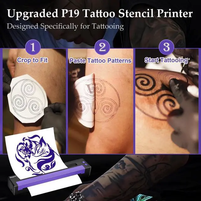 Professional Tattoo Printer: Specifically built for tattoo use. Bagana P19 thermal tattoo stencil printer with built-in 2500mAh rechargeable battery boasts smallsize lightweight wireless design, providing unparalleled convenience and usability to help you create tattoos anytime anywhere. Whether you are an experienced tattoo artist seeking to simplify your workflow or a beginner exploring creative paths, the P19 tattoo transfer printer is your ideal companion.
