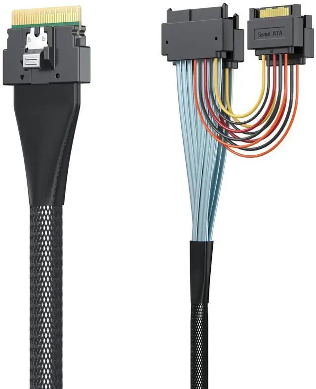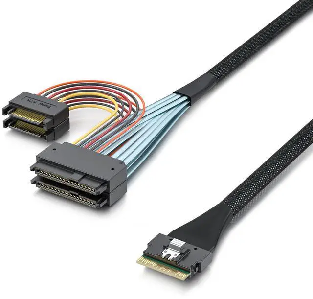 • Converts SFF-8654 8i SlimSAS (74-pin) to dual U.2 (SFF-8639) ports with integrated 15-pin SATA power connectors, enabling seamless expansion for enterprise storage systems.