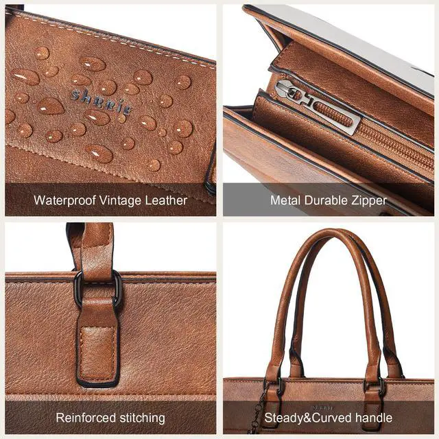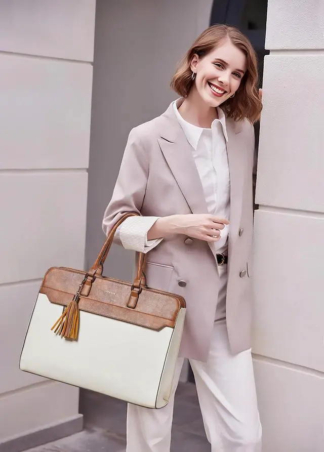 Faux leather Laptop Bag:The laptop tote bag for women is made of advanced materials and alloy zippers.The outer layer of the laptop bag is waterproof leather,and you can splash water on it (but the zipper is not waterproof,please do not soak the should bag in water).The advantage of leather bags is that they are easy to clean.You can use a wet wipe to gently remove most of the stains,without having to fight a battle to clean the womens laptop bag