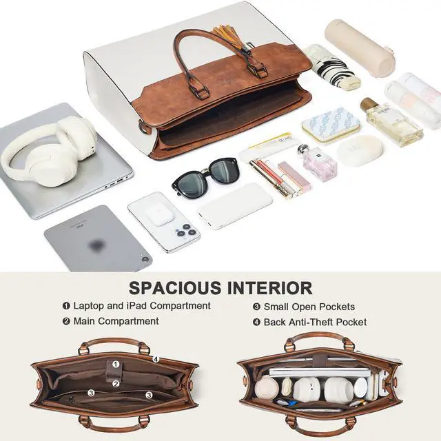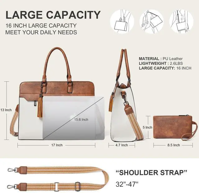 Multipurpose Purse tote bag:There are three different carrying options for various occasions.You be carried in several ways as a ladies briefcase,teacher tote bag, computer bag for women or women crossbody work bag as well.Great as a weekend getaway bag,college bag,travel bag purse,and work bag that can hold your daily essentials.