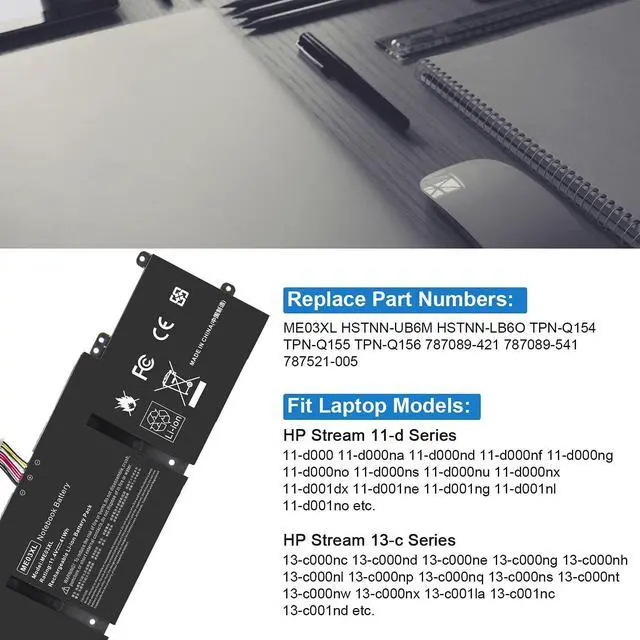 Replacement for Part Number P/NME03XL HSTNN-UB6M HSTNN-LB6O TPN-Q154 TPN-Q155 TPN-Q156 787521-005 787089-421 787089-541