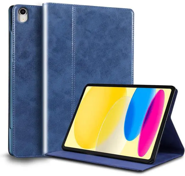 NANRUIL for Ipad (A16) 11th Gen 11 inch 2025 and Ipad 10th Generation 10.9 inch Case 2022 Genuine Leather Cover Protective Shell,Auto Wake/Sleep.Dark Blue
