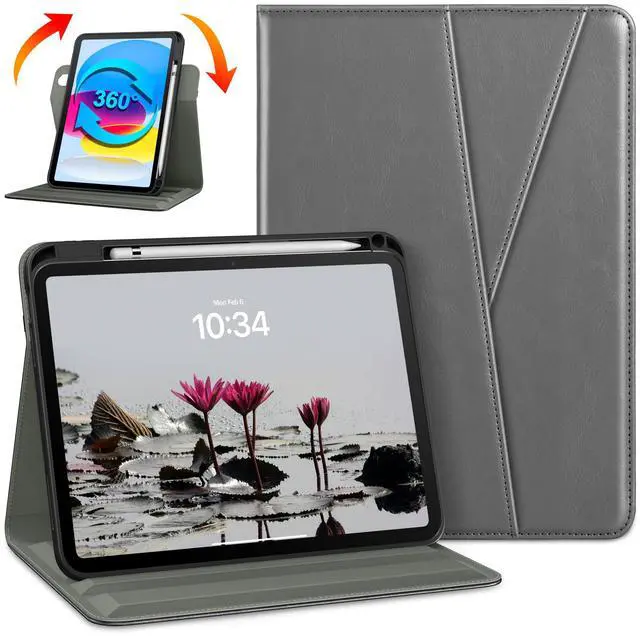 DTTO Rotating Case for iPad (A16) 11th Generation 11 Inch 2025, iPad 10th Generation 10.9 Inch 2022, 360 Degree Swiveling Premium Leather Folio Stand Cover with Pencil Holder, Grey