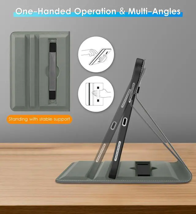 Internal embedded 360-degree rotating design, flexible rotation to any angle for comfortable watching movies or typing. Built-in leather hand strap (one-handed operation)