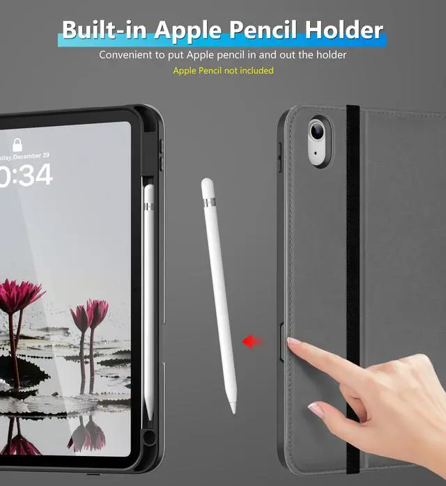 Built-in pencil holder, Pencil holder securely carries and protects your Apple Pencil (USB-C) or Apple Pencil 1st Gen wherever you go. Please Note: Apple pencil not included