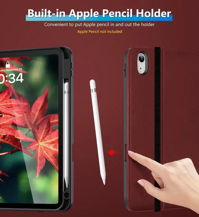 Built-in pencil holder, Pencil holder securely carries and protects your Apple Pencil (USB-C) or Apple Pencil 1st Gen wherever you go. Please Note: Apple pencil not included