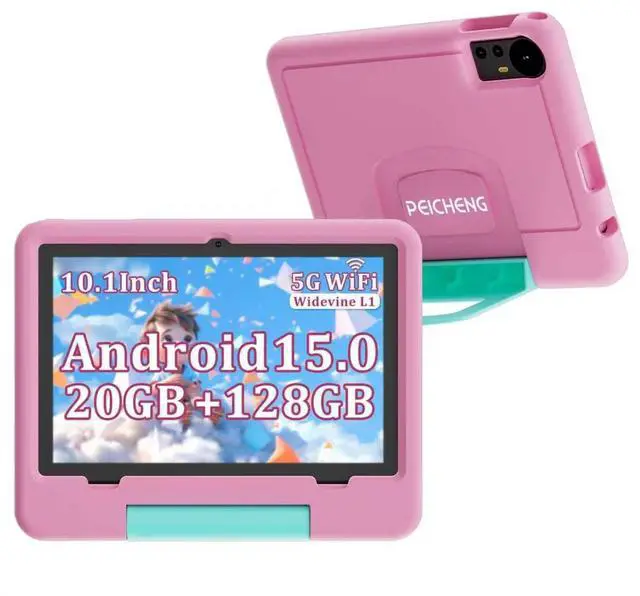 PEICHENG Tablet for Kids with EVA Protective Case, Android 15.0 Toddler Tab PC 10.1I nch RAM 20GB(4+16Expand) + ROM 128GB IPS 800 * 1280 5.0B luetooth (Pink)