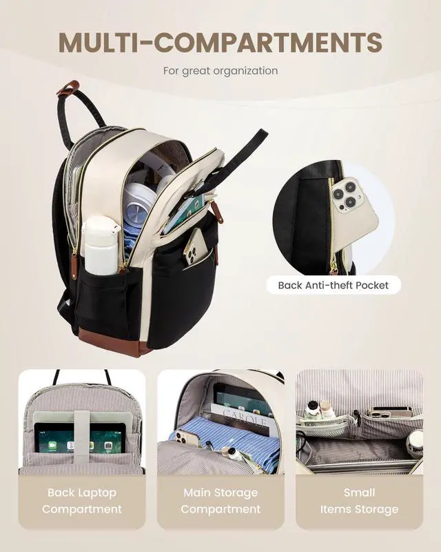 LARGE CAPACITYLaptop backpack has a total of 5 compartments and 17 pockets, which can provide great organization and storage for your computer, A4 folder, books, clothes, etc.