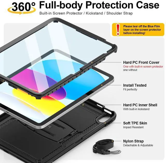 [Full-body Shockproof Case with Screen Protector]: This Case for iPad 11th/10th Generation is designed with anti-shock material, with hard PC frame, anti-scratch screen protector and soft TPE skin. All-round protection design to keep your 10th/11th generation from scratches, shocks or drop damages