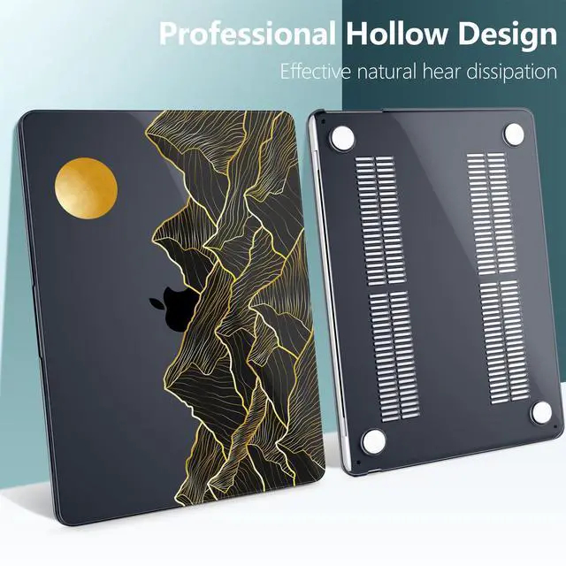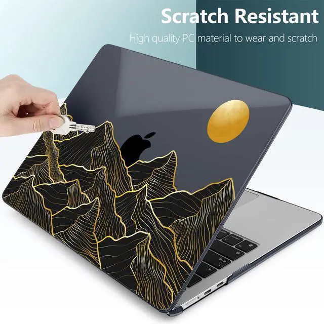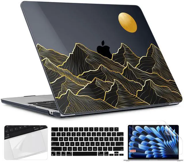 TWOLSKOO for M4 MacBook Air 13.6 inch Case 2025-2022 Release M4 A3240 M3 A3113 M2 A2681, Plastic Hard Shell & Screen Protector & Keyboard Cover & Trackpad Film, Golden Mountain