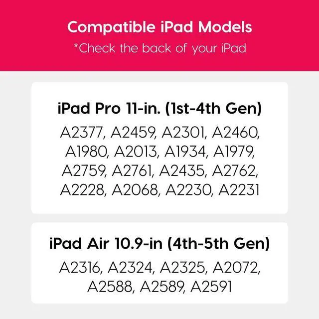 COMPATIBILITY: The protector is compatible with iPad Pro 11-in. (1st - 4th Generations) and iPad Air 10.9-in. (4th - 5th Generations) and Apple pen tips are compatible with Apple Pencil 1st generation and 2nd generation.
