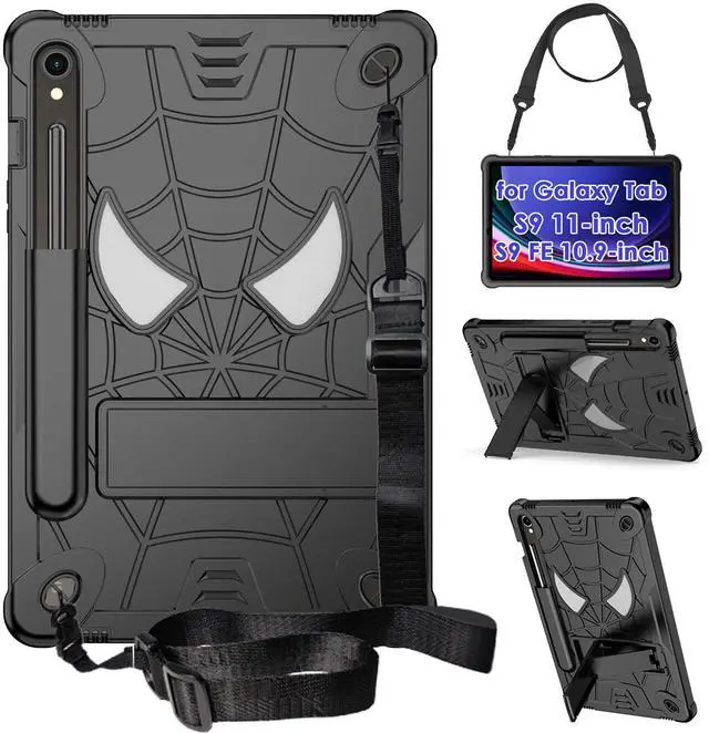 DETUOSI Kids Case for Samsung Galaxy Tab S9/ S9 FE 5G LTE/WiFi 11" 2023 with S Pen Holder + Shoulder Strap,3-Layer Hybrid Heavy Duty Full-Body Shockproof,4-Angle Viewing Protective Kids Cover for Boy
