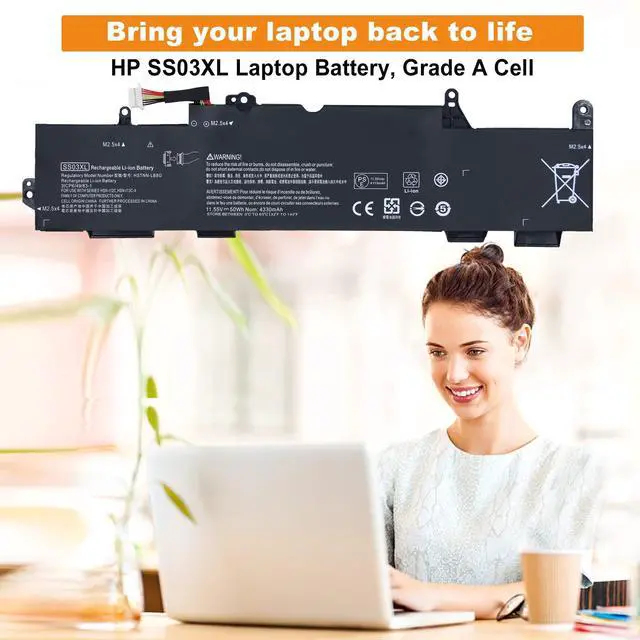 SpecificationsBattery Model : SS03XL, Voltage: 11.55 V, Capacity: 50Wh 4330 mAh. Color: Black. Type: Li-ion Battery. Up to 1000+ recharge cycles over the life of the battery. Packaged Included: 1 battery 1 Instructions 4+1 matching installation tools. Packaged by sponge or bubbles to prevent damage