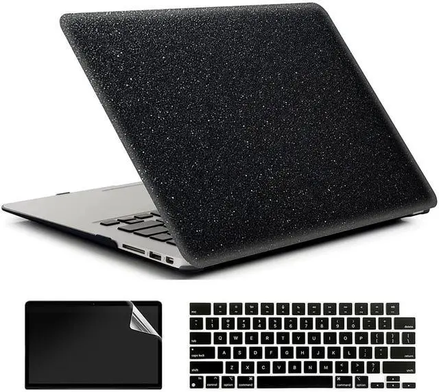 AMCJJ Compatible with MacBook Air M1 Case 13 Inch 2022 2021 2020 Release A2337/A2179 with Retina & Touch ID, Plastic Hard Shell Case & Keyboard Cover & Screen Protector - Glitter Black
