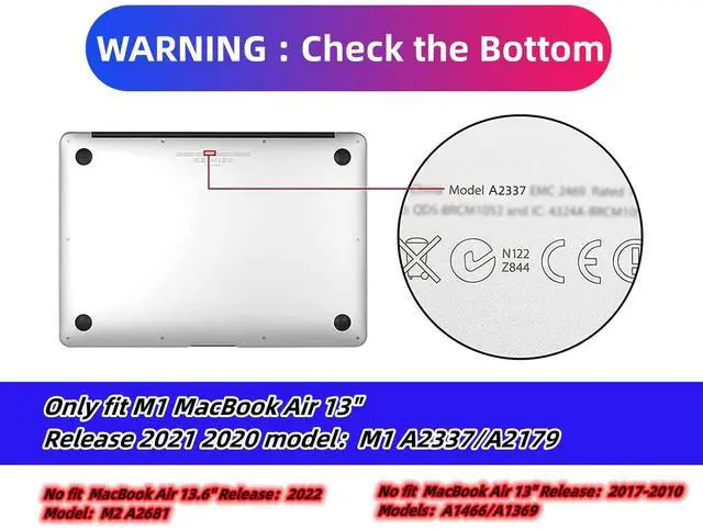 Compatible ModelsONLY compatible with MacBook Air 13/13.3 inch with Retina and Touch ID(2022 2021 2020 Release A2337 m1/A2179).Not compatible with 2017-2010 MacBook Air 13 inch case A1466/A1369.Not compatible with 2023 2022 MacBook Air M2 case 13/13.6 inch A2681. Not compatible with other Mac Air Pro Laptop models.