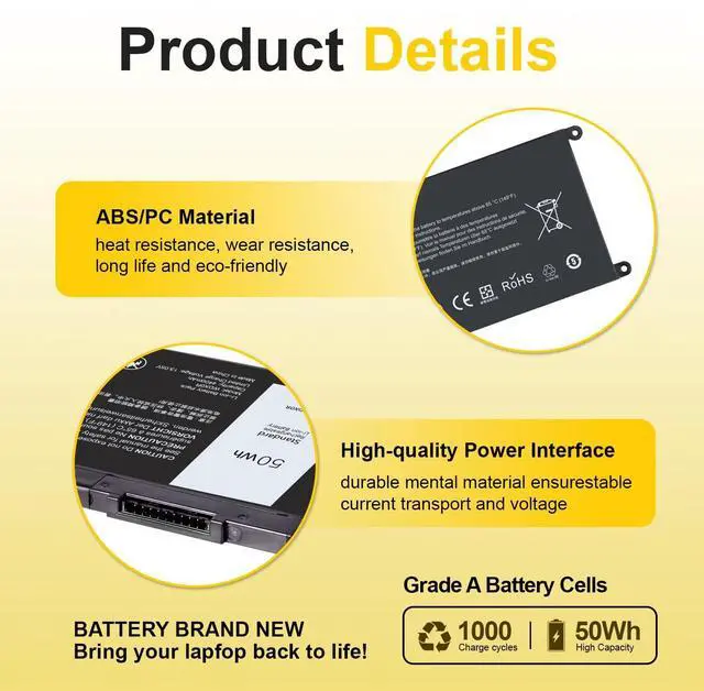 Specifications: Capacity: 50Wh/4400mAh; Voltage: 11.4V; !!!NOTICE!!! Even if your laptop battery capacity is 42Wh, you can use our 50Wh (WDX0R) battery. The larger capacity ensures extended usage without frequent recharging.