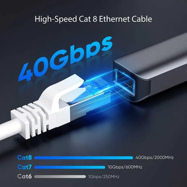 40G Data Transfer: Cat 8 ethernet cable transfer data at incredible speeds and supports up to 40Gbps and 2000MHz bandwidth, ideal for 8K streaming, VR gaming, and data centers. Cat8 ethernet cable 150 ft is future-proofing and faster data transfer compared to Cat5e and Cat6 and Cat7 cables.