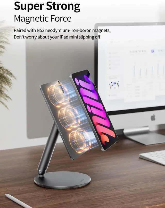 Compatible DeviceSpecially Design for Apple iPad Mini 7th generation A17 Pro 8.3-inch 2024/ iPad Mini 6th generation 8.3-inch 2021 (model number: A2567, A2568, A2569). Refined aluminum with adjustable design, our magnetic stand holds your iPad mini 7/6securely in place.