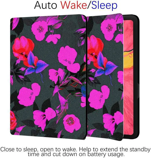 Berkin Arts for iPad (A16) 11th Generation 11 Inch 2025 iPad 10th 10.9 inch 2022 Folio Case Premium Leather Cover Art Neon Floral Pattern Dark Flower Pattern
