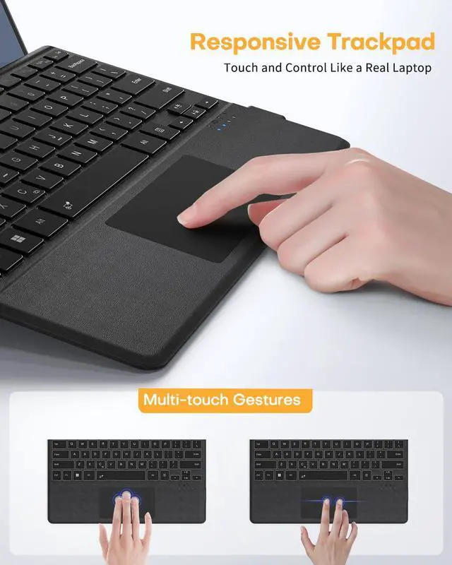 [7 Color Backlit]: This surface keyboard with touchpad features 7 pleasant colors backlit with 3 brightness level. You may choose the colorful backlight you like to satisfy your needs of using the microsoft keyboard under different lighting conditions.(Press F1 or Fn+F1 to open the backlight or adjust the brightness, Press Fn+ / Fn+ to change color.).
