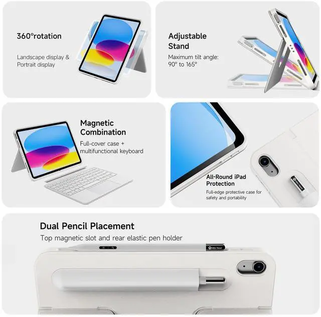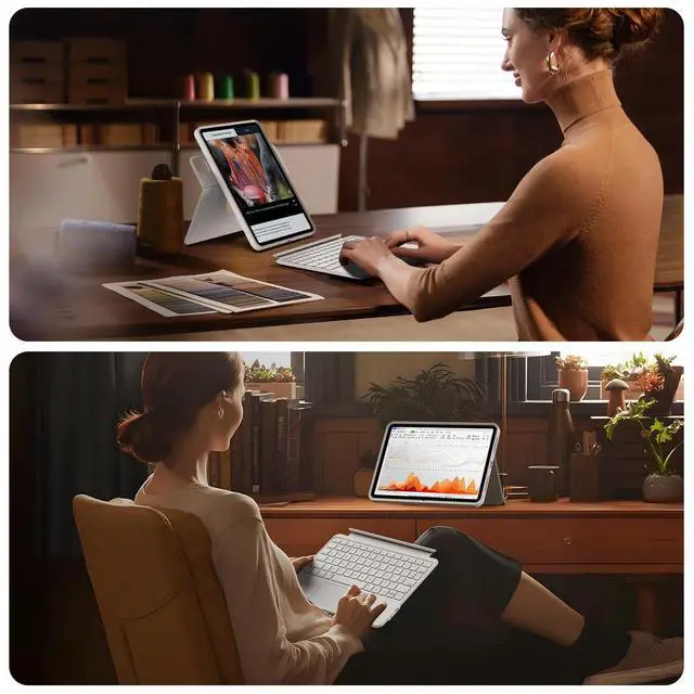 [Magnetic Detachable Design] attaches/detaches in 1 second. Keyboard and case can be used together or separately. : Case only: Ideal for drawing, streaming, reading. Keyboard + case (combined/separated in landscape): Efficient work, text input. Keyboard + case (separated in portrait): Quick notes, social media.