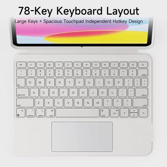 HOU 360° Rotating & Detachable Keyboard Case for iPad A16 11/10-155° Adjustable Stand, Apple Pencil/Stylus Slot, Multi-Touch Trackpad, 7- Colors Backlit, Full Protection Cover, US English Layout