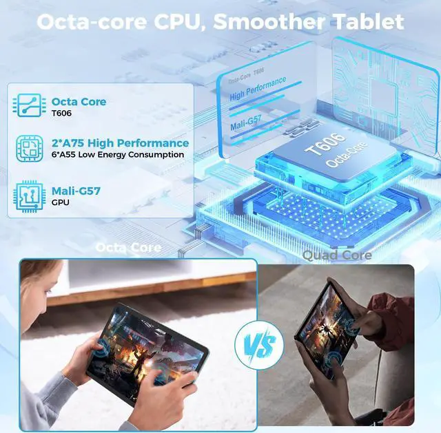 Octa-Core T606 The octa-core chipset can handle more demanding applications and tasks such as streaming video, browsing the web and running apps simultaneously without lag or slowdown, resulting in smoother performance and faster load times
