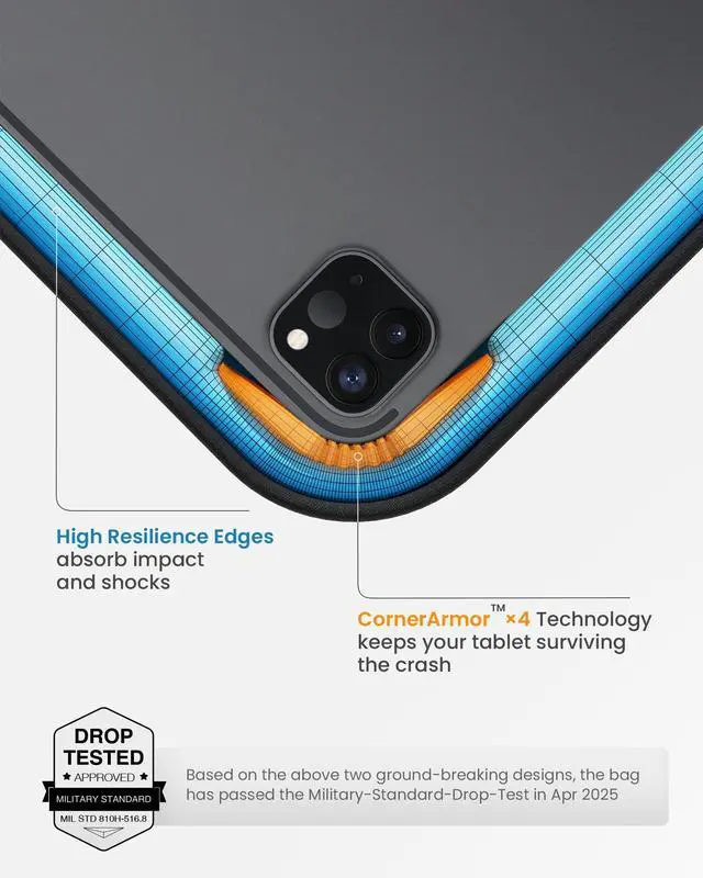 Military-Grade Protection: To combat the toughest situations: from falls to shocks to vibrations, tomtoc proposed the concept of 360 protection and designed the tablet sleeve with CornerArmor Technology, high resilience edges, and high-density soft padding. It passed the Military-Standard-Drop-Test while also maintaining a sleek design