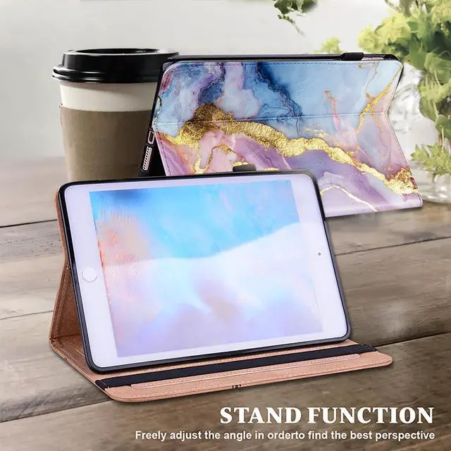 [Multi-card slot]: Built-in card slots can hold credit cards, ID cards and even a small amount of change. Extremely stable when using the stand function. There is a pen sleeve on the side of the protective cover for placing the pen.