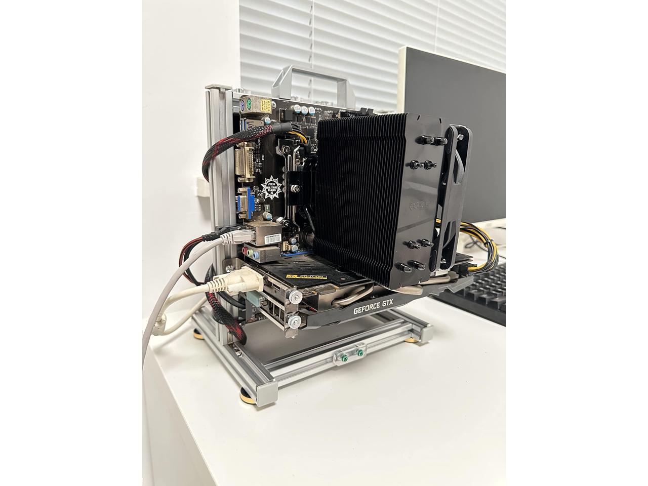 SharGwa PC Mini-Matx (17 * 25) Motherboard Open Case Frame, Open Bare Metal Air Water Cooling Fan Stand (Silver)