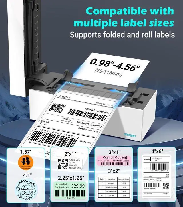 ORGBRO Bluetooth Thermal Shipping Label Printer, Z1-Plus Wireless 4X6 Shipping Label Printer for Small Business Office or Home Support iPhone Android Windows macOS Chrome Amazon Ebay Shopify USPS