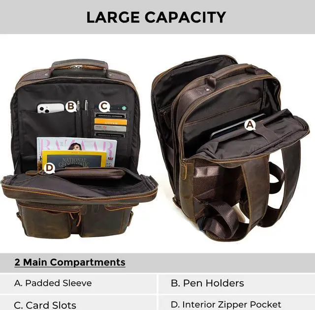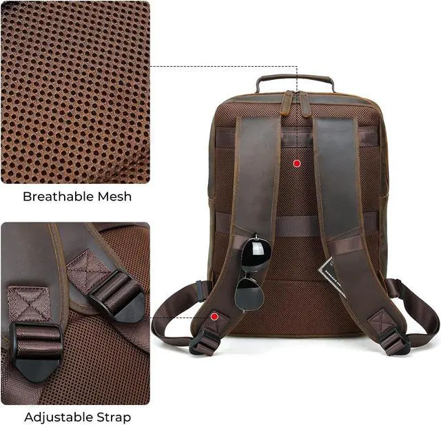 High-Quality Material: This leather backpack for men is made of full grain cowhide leather, decorate with YKK Zippers and Metal Hardware. so this leather backpack will stand the test of time and will get brighter over time.
