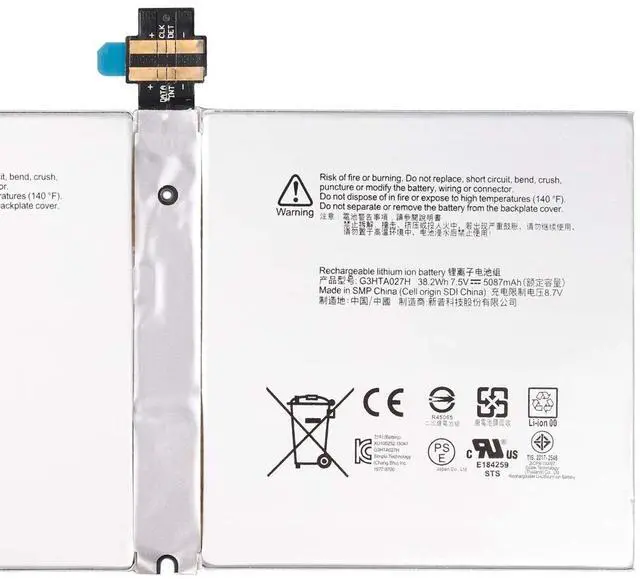 • Voltage: 7.5V.Capacity:5087mAh 38.2Wh
