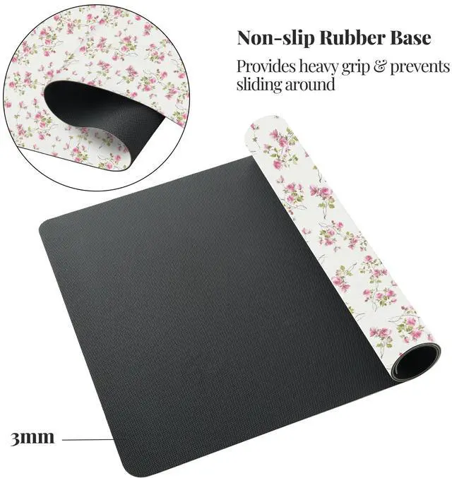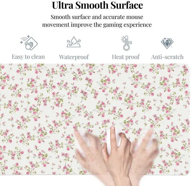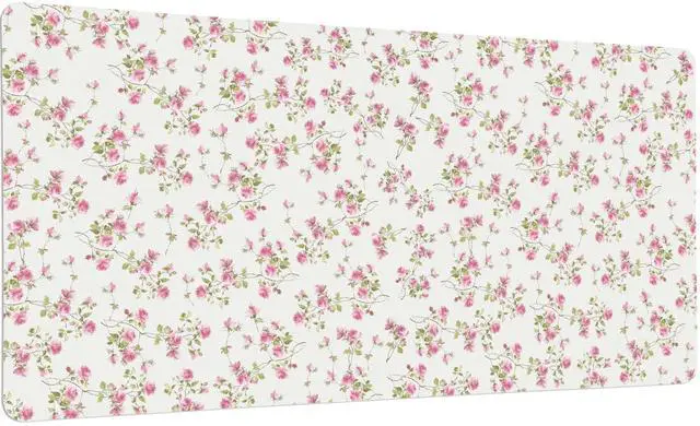 Idocolors Pink Floral Desk Mat, Cute Extended Gaming Keyboard Mouse Pad, Large Office Desk Cover Mat Pad Deskmat, Non-Slip Leather Home Office Desk Mat Protector 31.5" × 15.7"