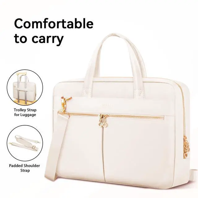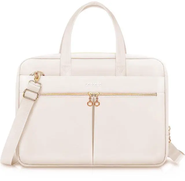 Ferkurn Laptop Bag Case Women Men Computer Bag Compatible with MacBook/HP/LG/Dell, Shoulder Strap Slim Carrying Messenger Briefcase, Beige, 14 Inch
