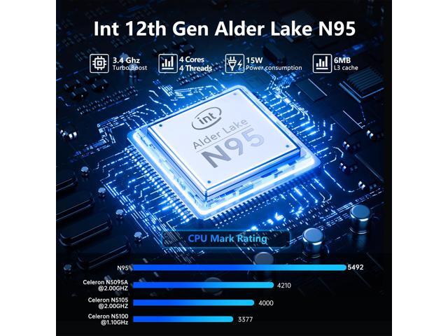 - [Advanced Processor]: The laptop features the latest 12th generation Alder Lake N95 processor with 3.4GHz boost frequency, 4 cores and 4 threads, providing powerful performance for multitasking, streaming, and gaming.