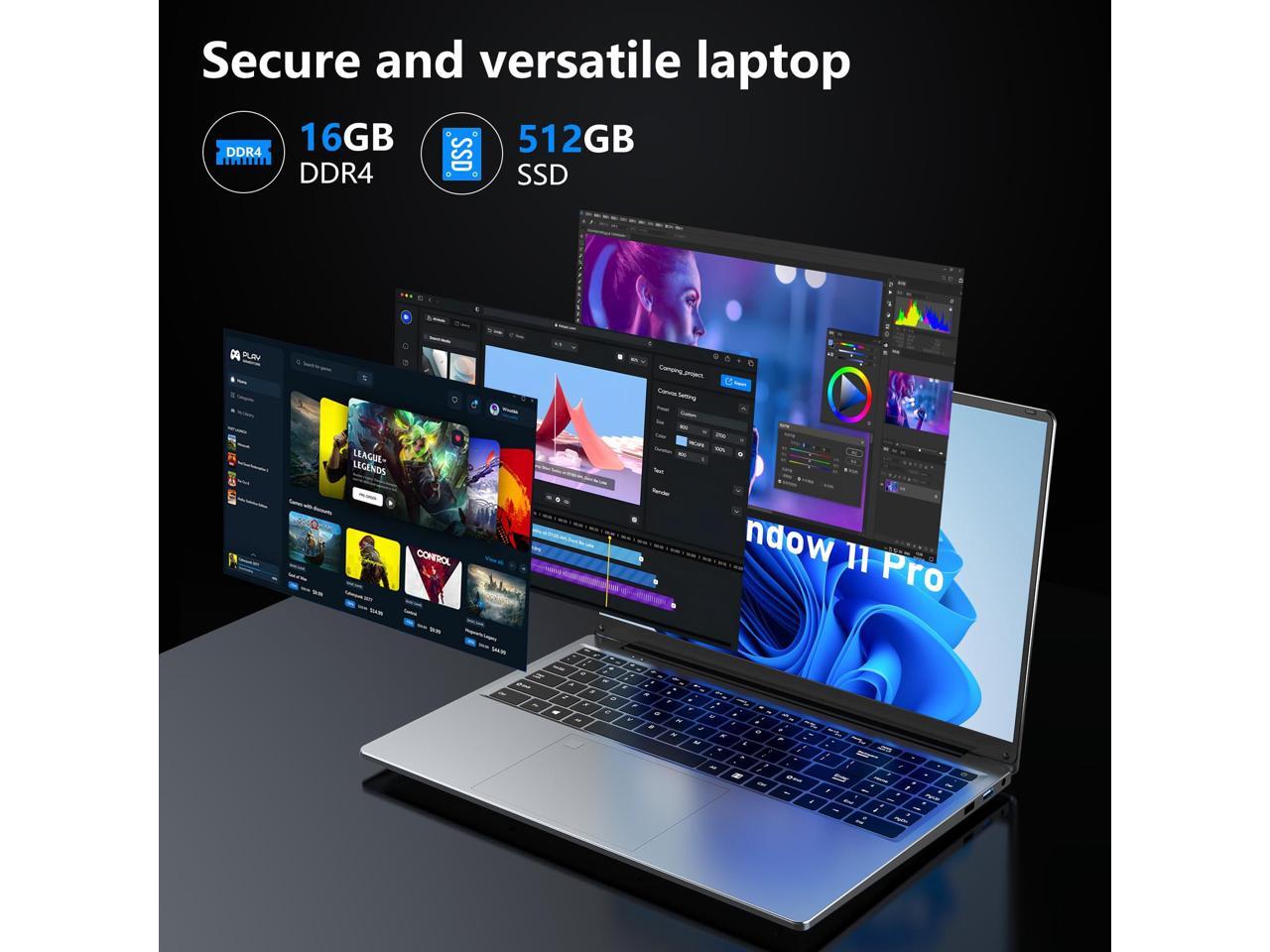 FUNYET Gaming Laptop, 16 inch Laptop Computer 2025 with Win 11 Pro, 16GB RAM 512GB SSD, Int 12th Gen N95 Processor(up to 3.4GHz), Backlit Keyboard, Bluetooth, Mini HDMI, FHD 1920 * 1200