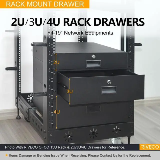 • This 2U rack mount drawer fits 19-inch standard network devices and can also be widely used in IT, AV, DJ, networking, and server cabinets