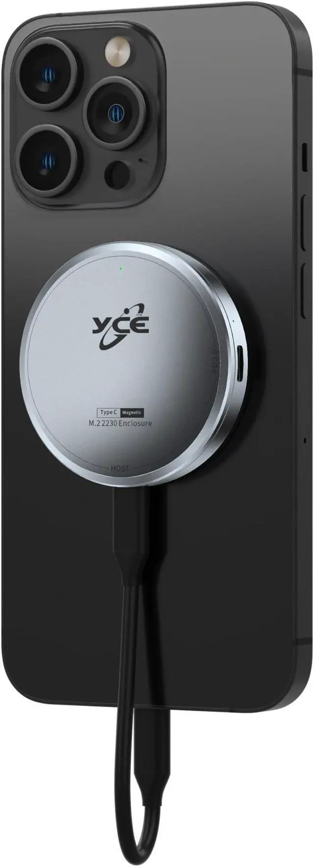 Magnetic M. 2 2230 NVME SSD Enclosure - External Storage for iPhone 15/16 Pro Max, USB C 3.2 Gen2 10Gbps to NVMe Adapter, 100W PD Charging, Aluminum External SSD Case for Android/iPad/MacBook
