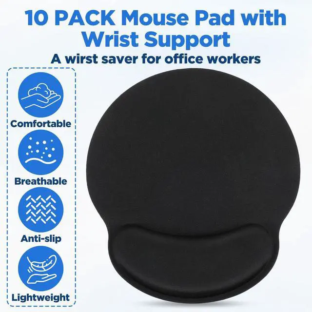 This 10-piece ergonomic mouse pad is made of three layers of memory foam, rubber and spandex, and each piece is 25*23* 2.4 cm ( 3.5 mm thickness mouse pads). The wrist rest design takes on the wrist pressure through a 2.4 cm gentle slope transition, and the high-density memory foam core provides adaptive support, effectively reducing operating discomfort; the elastic spandex surface is smooth and does not affect mouse tracking, and it is easy to clean. The non-slip rubber base fits tightly to the desk or laptop surface to ensure stability and no displacement during use.