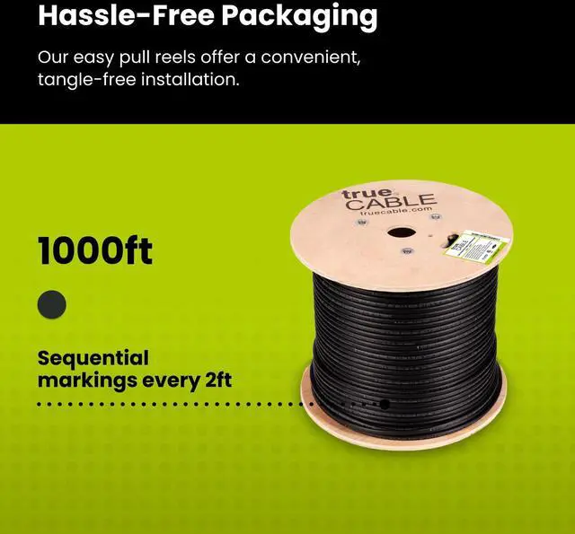 [Easy to Use] Comes pre-spooled on a tangle free, easy pull reel (500ft or 1000ft) so you dont have to worry about getting behind on your next job. Footage markings every 2 feet improve efficiency and easily allow you to track how much cable is left.