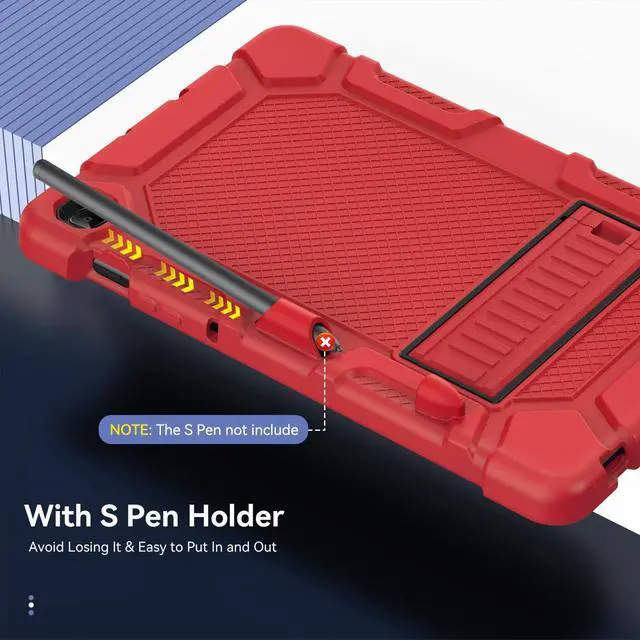 With S Pen Holder Built-in S Pen Holder/Slot. This Tab S6 lite case 10.4'' is easy access to all the controls and features. Perfect cutouts for speakers, cameras, ports. NO S Pen in the package.