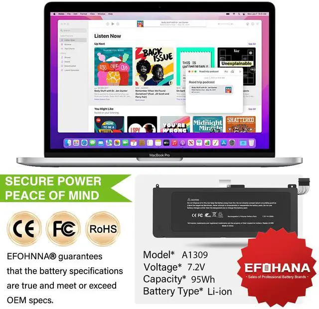 EFOHANA A1309 Battery A1297 Laptop Battery Replacement for MacBook Pro 17 inch A1297 (Only fit Early 2009 Mid2009 Mid2010 Version) EMC 2272, EMC 2329*, EMC 2352* MC226/A MC226CH/A MC226J/A 7.2V 95Wh
